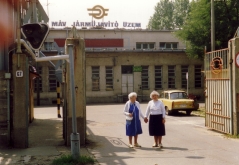Nuci és Gizike a MÁV műhely elött, ahol édesapja dolgozott Debrecenben